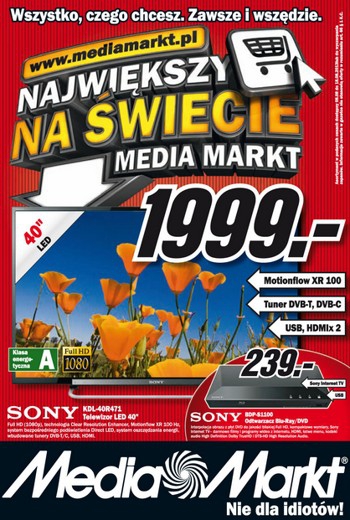 - Telewizor LED 40″ SONY KDL-40R471A – 1999 zł.