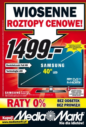 - Telewizor LED 40″ Samsung – 1499 zł.