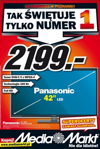 Nowa gazetka promocyjna marketów Media Markt w Poznaniu na 14. urodziny – „Tak świętuje tylko nr 1”.