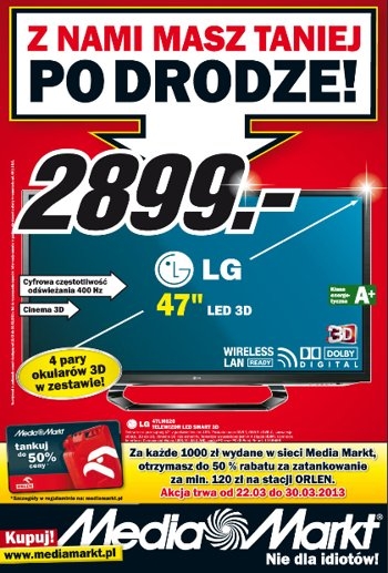 - Telewizor LED 3D 47″ LG 47LM620S – 2899 zł.