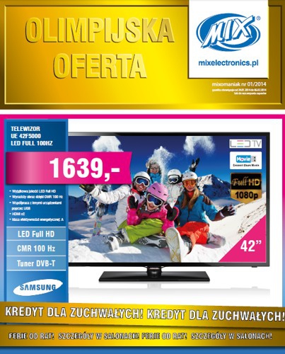 - Telewizor LED 42″ SAMSUNG UE42F5000 – 1639 zł.