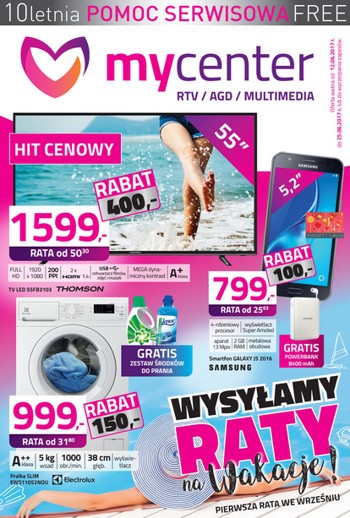 Nowa gazetka promocyjna sieci sklepów MyCenter – „Wysyłamy raty na wakacje!”.