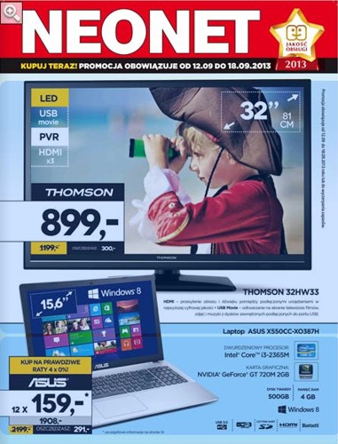 - Telewizor LED 32″ THOMSON 32HW3323 – 899 zł.
