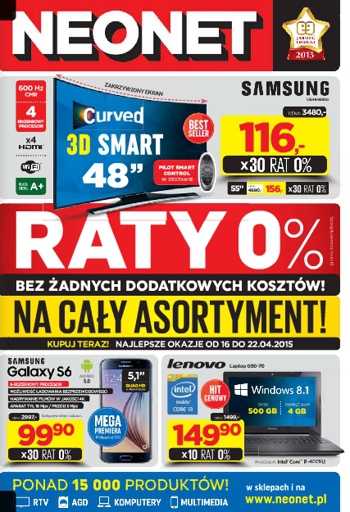 Nowa gazetka promocyjna Neonet – „Raty 0% bez żadnych dodatkowych kosztów na cały asortyment”.