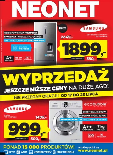 Nowa gazetka promocyjna Neonet – „Wyprzedaż – jeszcze niższe ceny na duże AGD”.