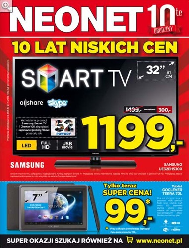 - Telewizor LED 32” SAMSUNG UE32EH5300 – 1199 zł.