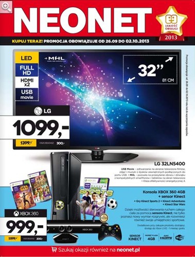- MICROSOFT XBOX 360 4GB + Kinect + GRY – 999 zł.