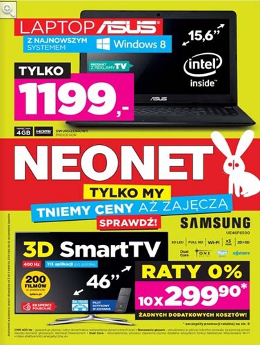 Nowa gazetka promocyjna Neonet – „Tylko my tniemy ceny aż zajęczą”.