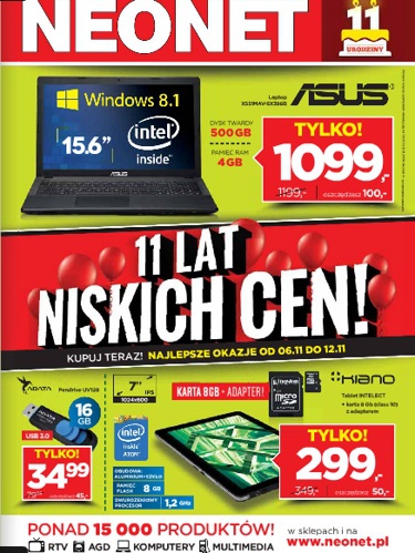 Nowa gazetka promocyjna Neonet – „11 lat niskich cen!”.