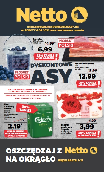 Oferta ważna od poniedziałku 1.08 do soboty 6.08 lub do wyczerpania asortymentu.
