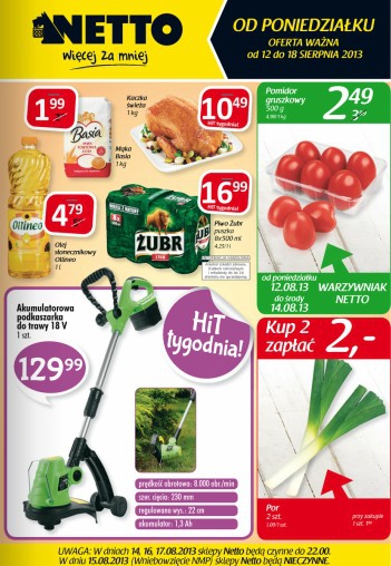 - Akumulatorowa podkaszarka do trawy 18 V – 129,99 zł.