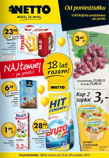 Nowa gazetka promocyjna Netto – „Superoferta urodzinowa – po prostu”.