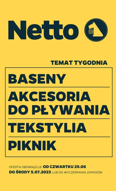 ’Baseny, akcesoria do pływania, tekstylia i piknik’ – nowa gazetka promocyjna sieci sklepów Netto.