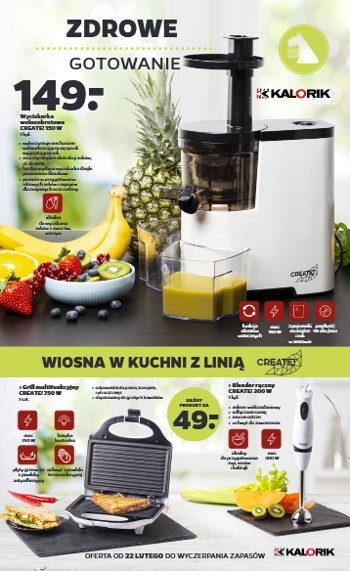 Wyciskarka wolnoobrotowa Kalorik Create! 150 W – 149 zł.