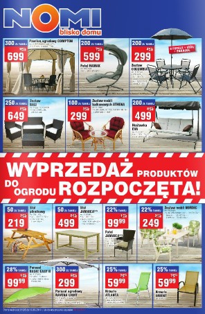 Nowa gazetka promocyjna Nomi – „Wyprzedaż produktów do ogrodu rozpoczęta!”.
