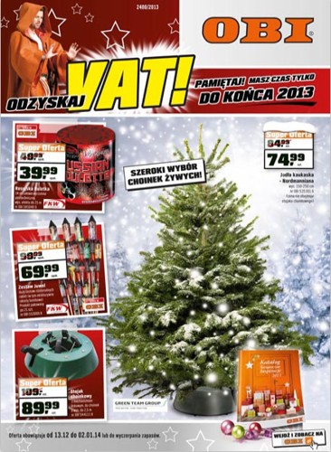 Nowa gazetka promocyjna Obi – „Odzyskaj VAT! Pamiętaj! Masz czas tylko do końca 2013”.