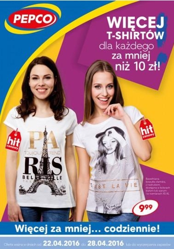 Nowa gazetka promocyjna Pepco – „Więcej t-shirtów dla każdego za mniej niż 10 zł!”.