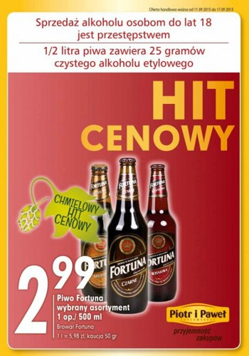 - Piwo Fortuna 500 ml – 2,99 zł.