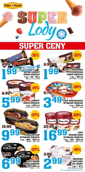 Nowa gazetka promocyjna sieci sklepów Piotr i Paweł – „Super lody”.