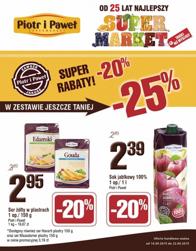 Nowa gazetka promocyjna sieci sklepów Piotr i Paweł – „Super rabaty!”.