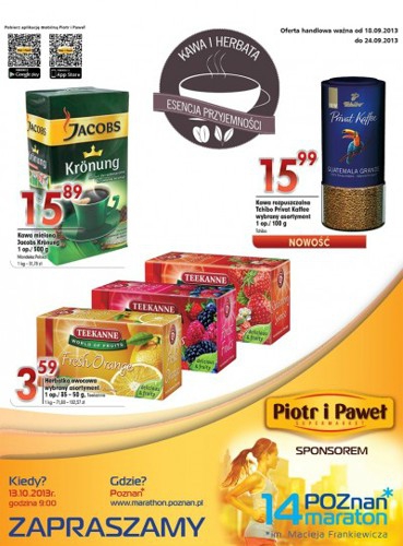 Nowa gazetka promocyjna sieci sklepów Piotr i Paweł – „Kawa i herbata – esencja przyjemności”.