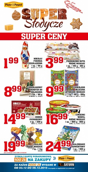Nowa gazetka promocyjna sieci sklepów Piotr i Paweł – „Super słodycze”.