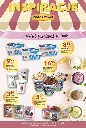 ’Wielki festiwal lodów’ – nowa gazetka promocyjna sieci sklepów Piotr i Paweł.