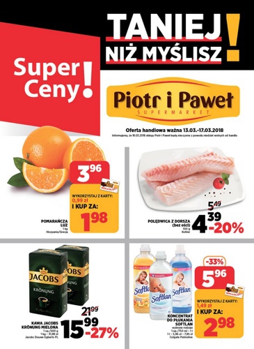 ’Taniej niż myślisz! Super ceny!’ – nowa gazetka promocyjna sieci sklepów Piotr i Paweł.