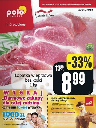 - Łopatka wieprzowa bez kości 1 kg – 8,99 zł.