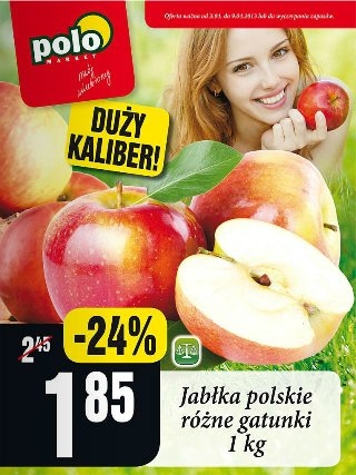 - Jabłka polskie, różne gatunki 1 kg – 1,85 zł.
