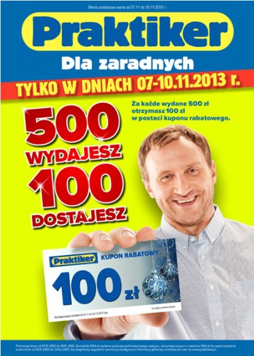 Tylko w dniach 7.11 do 10.11 za każde wydane 500 zł otrzymasz 100 zł w postaci kuponu rabatowego.