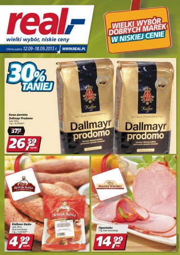Nowa gazetka promocyjna sieci handlowej Real – „Wielki wybór dobrych marek w niskich cenach”.