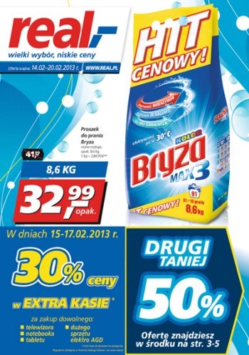 Nowa gazetka promocyjna sieci handlowej Real. Oferta ważna od 14.02 do 20.02. W dniach 15-17.02 telewizory, notebooki, tablety oraz duży sprzęt AGD 30% taniej.