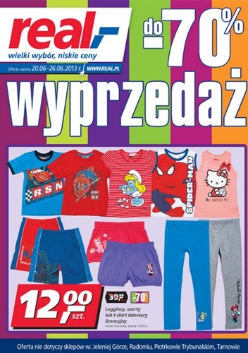 Najnowsza gazetka promocyjna sieci handlowej Real – „Wyprzedaż do -70%”.