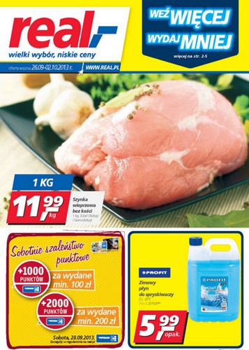 Nowa gazetka promocyjna sieci handlowej Real – „Weź więcej wydaj mniej”.