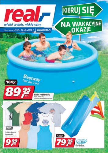 Nowa gazetka promocyjna sieci handlowej Real – „Kieruj się na wakacyjne okazje”.