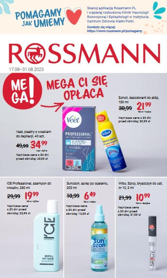 Oferta ważna od czwartku 17.08 do czwartku 31.08 lub do wyczerpania zapasów. Promocja dotyczy wybranych artykułów z linii. Wybrane oferty dostępne w wybranych drogeriach Rossmann.