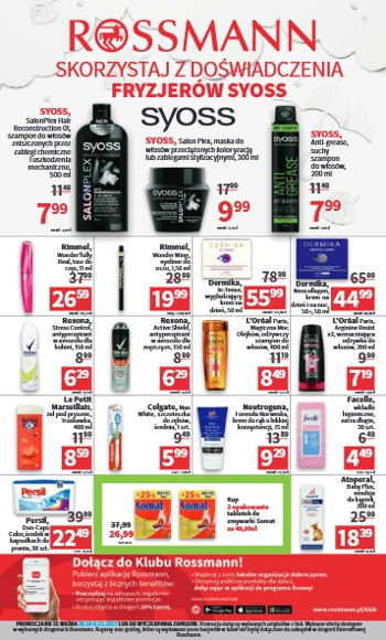 Nowa gazetka promocyjna drogerii Rossmann – „Skorzystaj z doświadczenia fryzjerów Syoss”.