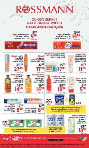 ’Odkryj sekret natychmiastowego efektu wybielania zębów’ – nowa gazetka promocyjna drogerii Rossmann.