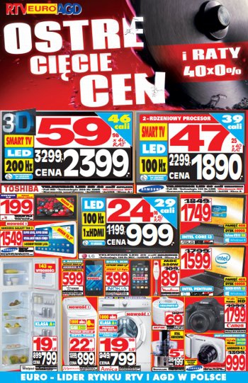 Najnowsza gazetka promocyjna RTV EURO AGD – „Ostre cięcie cen i raty 40×0%”.