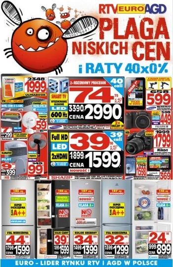 Najnowsza gazetka promocyjna RTV EURO AGD – „Plaga niskich cen i raty 40×0%”.