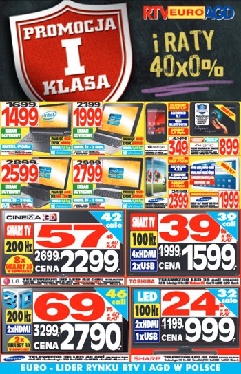 Najnowsza gazetka promocyjna RTV EURO AGD – „Promocja I klasa i raty 40×0%”.