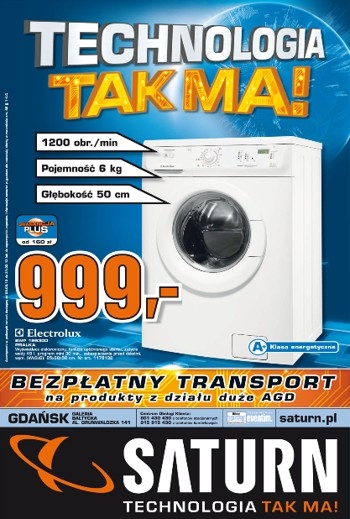 - Pralka Electrolux 6kg 1200 obr./min – 999 zł.