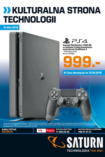 Konsola PlayStation 4 500 GB z bezprzewodowym kontrolerem DualShock 4 – 999 zł.