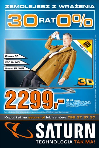 Nowa gazetka promocyjna Saturn – „30 rat 0%”.