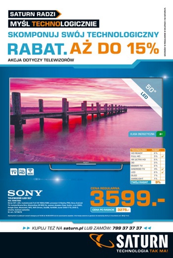 Nowa gazetka promocyjna Saturn – „Skomponuj swój technologiczny rabat. Aż do 15%”.