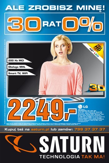 - Telewizor LED 3D 42″ LG 42LA641S – 2249 zł.