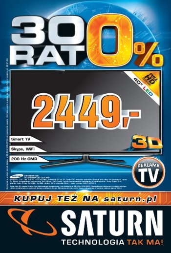 Najnowsza gazetka promocyjna Saturn – „30 rat 0%”.