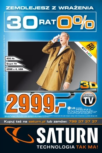 - Telewizor LED 3D 47″ LG 47LM640S – 2999 zł.