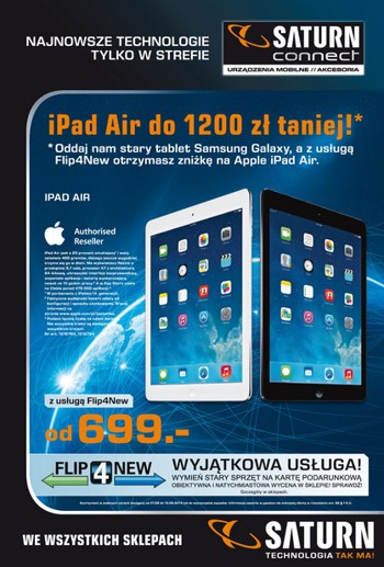 Nowa gazetka promocyjna Saturn – „Najnowsze technologie tylko w strefie Saturn connect”.